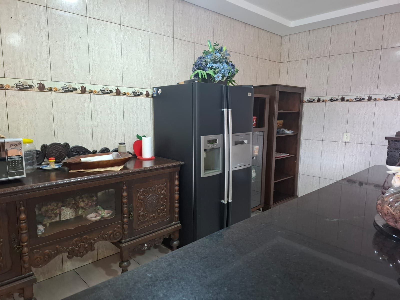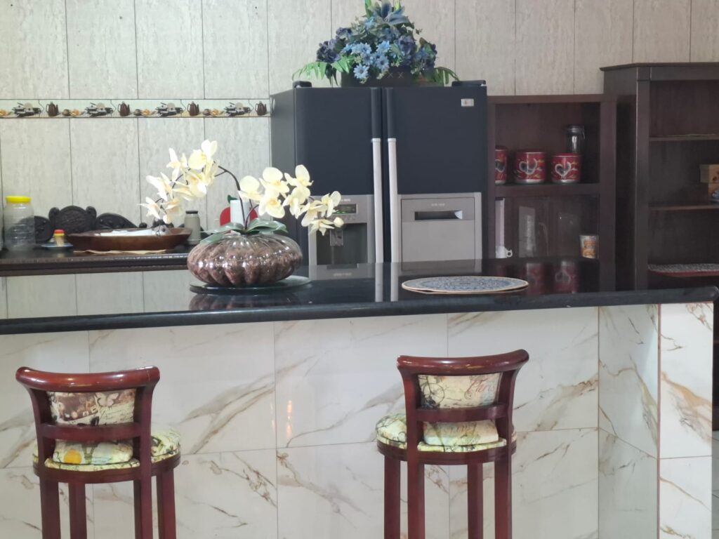 • Cozinha ampla e moderna, totalmente revestida em mármore